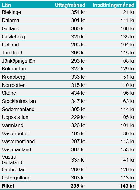 Uttag och insättning per person och månad under andra halvåret 2025 i varje län.